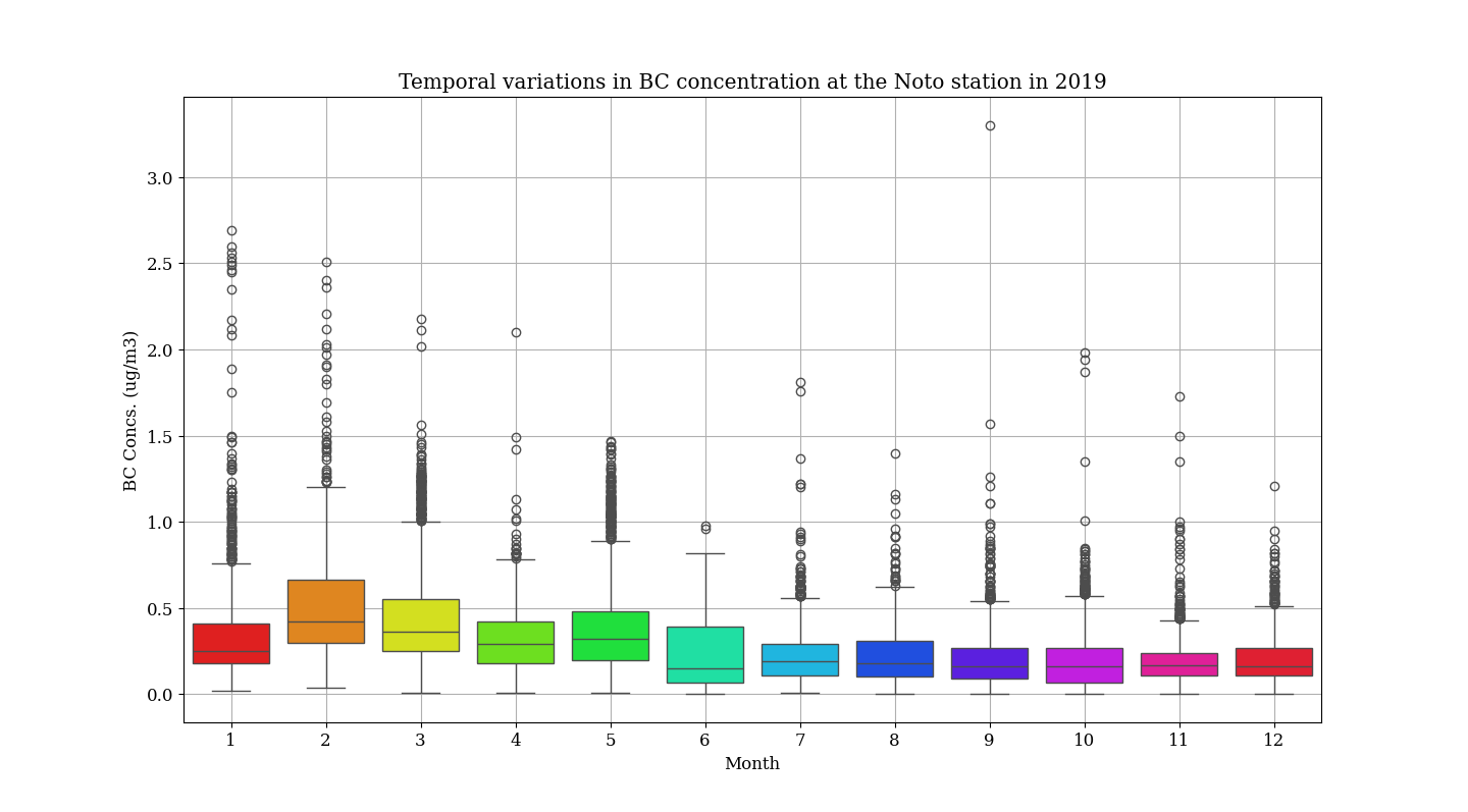 | Title | Atmospheric black carbon concentration observed at NOTOGRO, Noto Ground-based Research Observatory, in 2019 | |